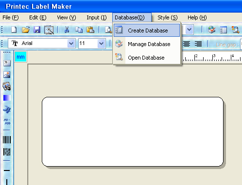 9. It returns back to label window and the first data entered will be displayed on database window as shown below.Rest of data can be checked through "Preview".