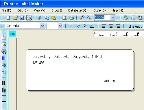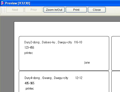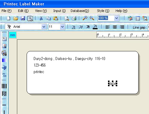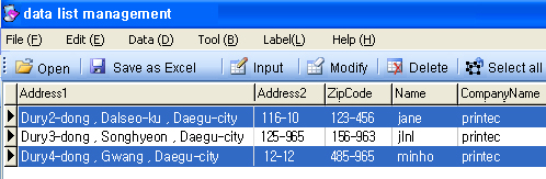 6. It returns back to label window and the first data entered will be displayed on database window as shown below.