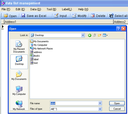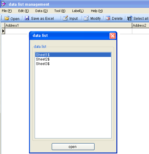 2. Click Open Data List from data list when label sheet is shown on the screen.